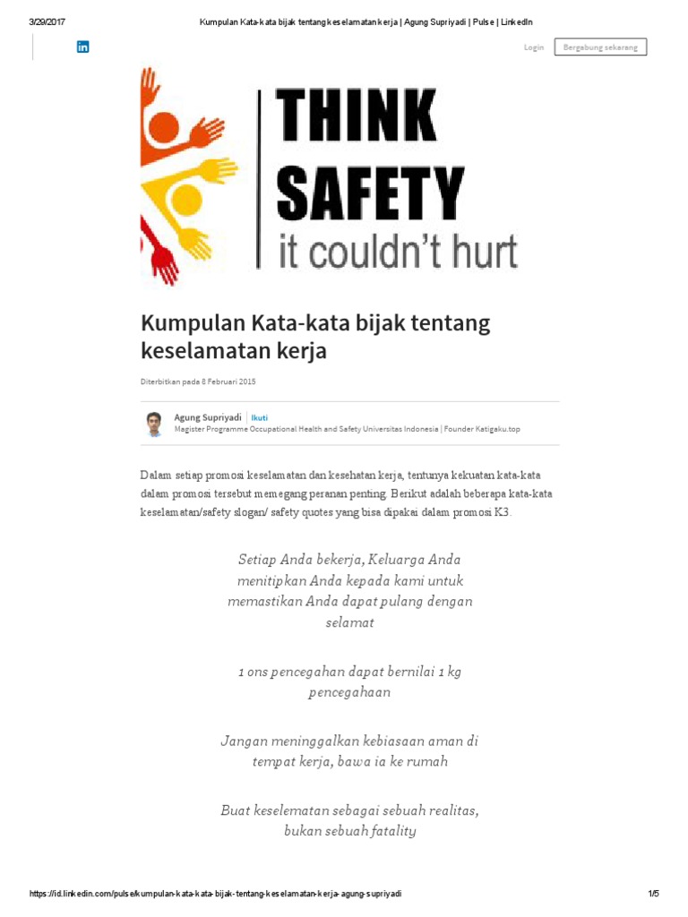 Kumpulan Kata Kata Bijak Tentang Keselamatan Kerja Agung Supriyadi Pulse Linkedin
