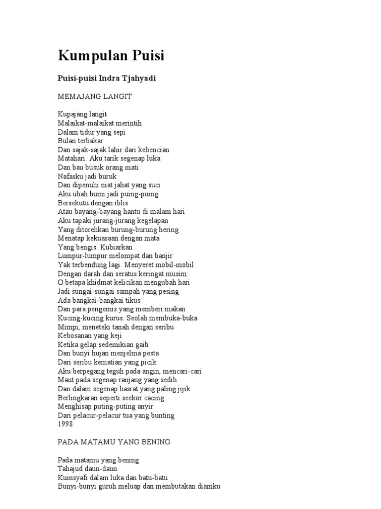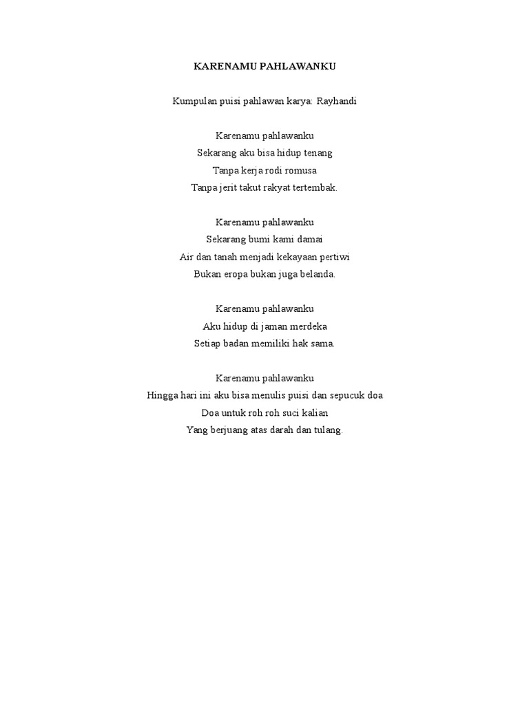 The sun no someone appeared when Puisi tentang Cinta the suns rays. Kesejahteraan tinggallah angan keadilan hanyalah khayal kemerdekaan telah terjajah yang tersisah hanya kebodohan. Untuk kemerdekaan Indonesia abadi.