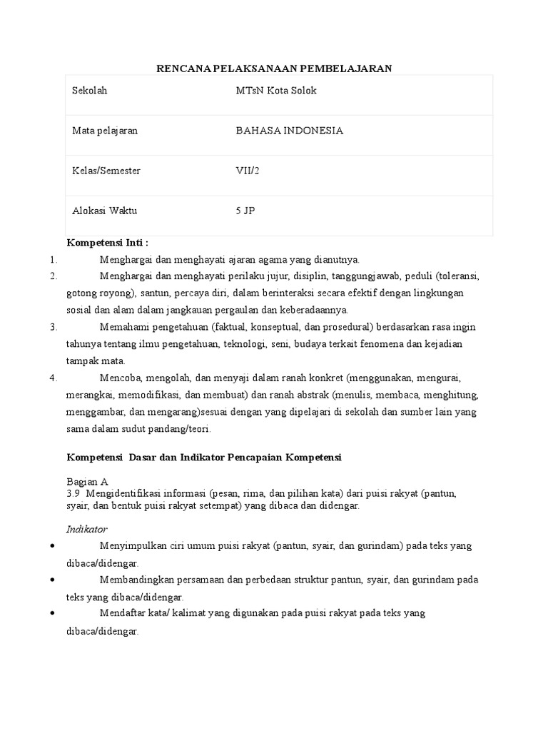 Rencana Pelaksanaan Pembelajaran Puisi Rakyat