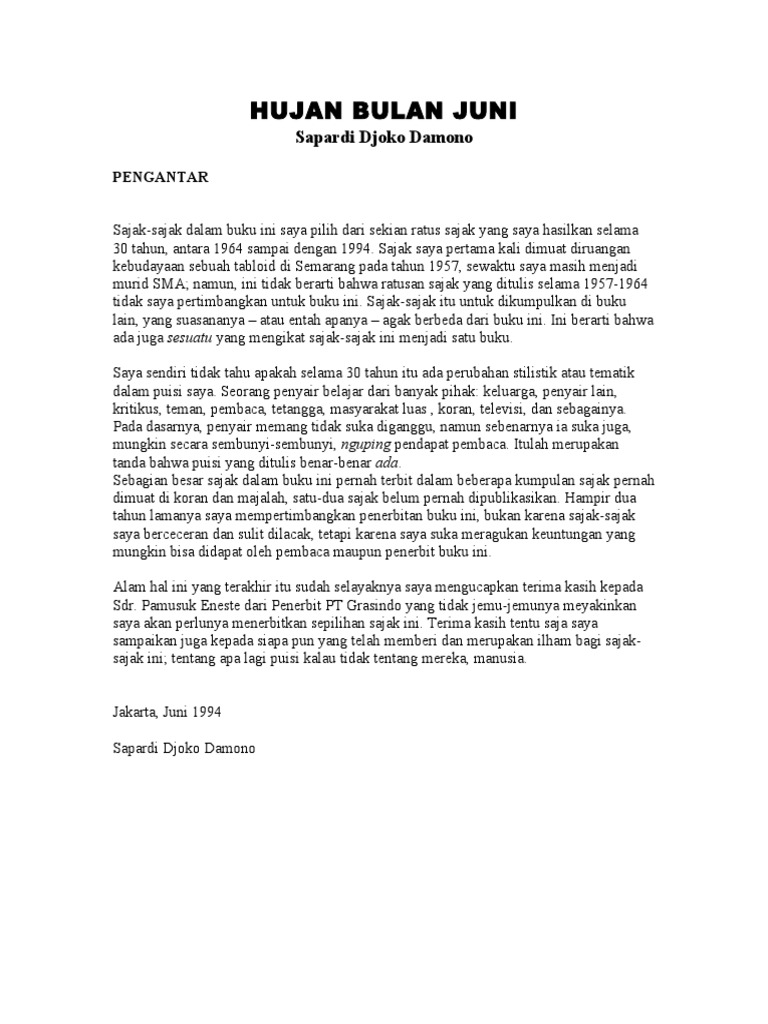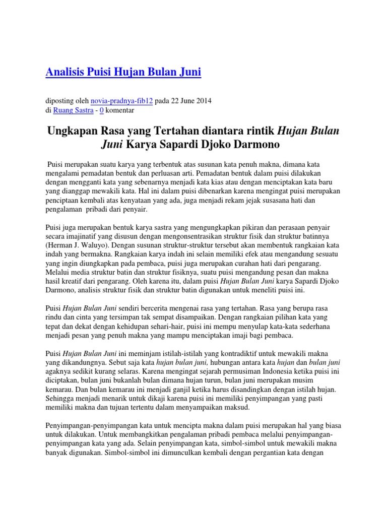 Analisis Struktur Lahir Dan Struktur Batin Puisi Hujan Bulan Juni Karya Sapardi Djoko Damono Gurupembelajar Id Pusat Ilmu Pengetahuan
