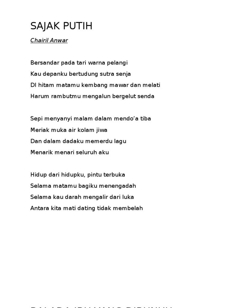 Tetapi hidup yang tidak hidup karena kehilangan daya dan kehilangan fitrahnya. Puisi lama masih terikat dengan jumlah baris bait ataupun rima sajak. Wahai Dik Narti kuingin dikau menjadi ibu anak-anakku.