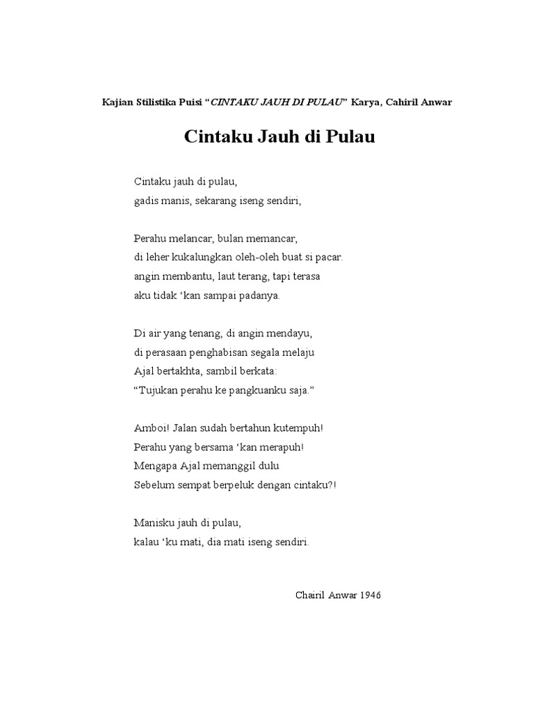 Puisi Cintaku Jauh Di Pulau Chairil Anwar