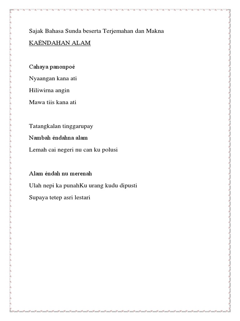 Contoh carpon bahasa sunda tentang keindahan alam. Kumpulan sajak bahasa sunda dan puisi bahasa sunda sajak tentang sahabat guru pahlawan dan tentang alam ibu atau indung lengkap dengan ciri dan pengertian. Alam Ä—ndah nu merenah.