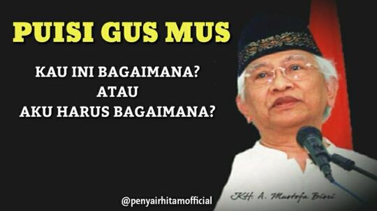 Dikasih es teler minta teler. Beliau sering di panggil Gus Mus ini memiliki ratusan karya sastra yang diakui oleh sastrawan Indonesia. Orang dapat memahami secara mudah ke mana arah tujuan puisi Gus Mus dibidikkan.